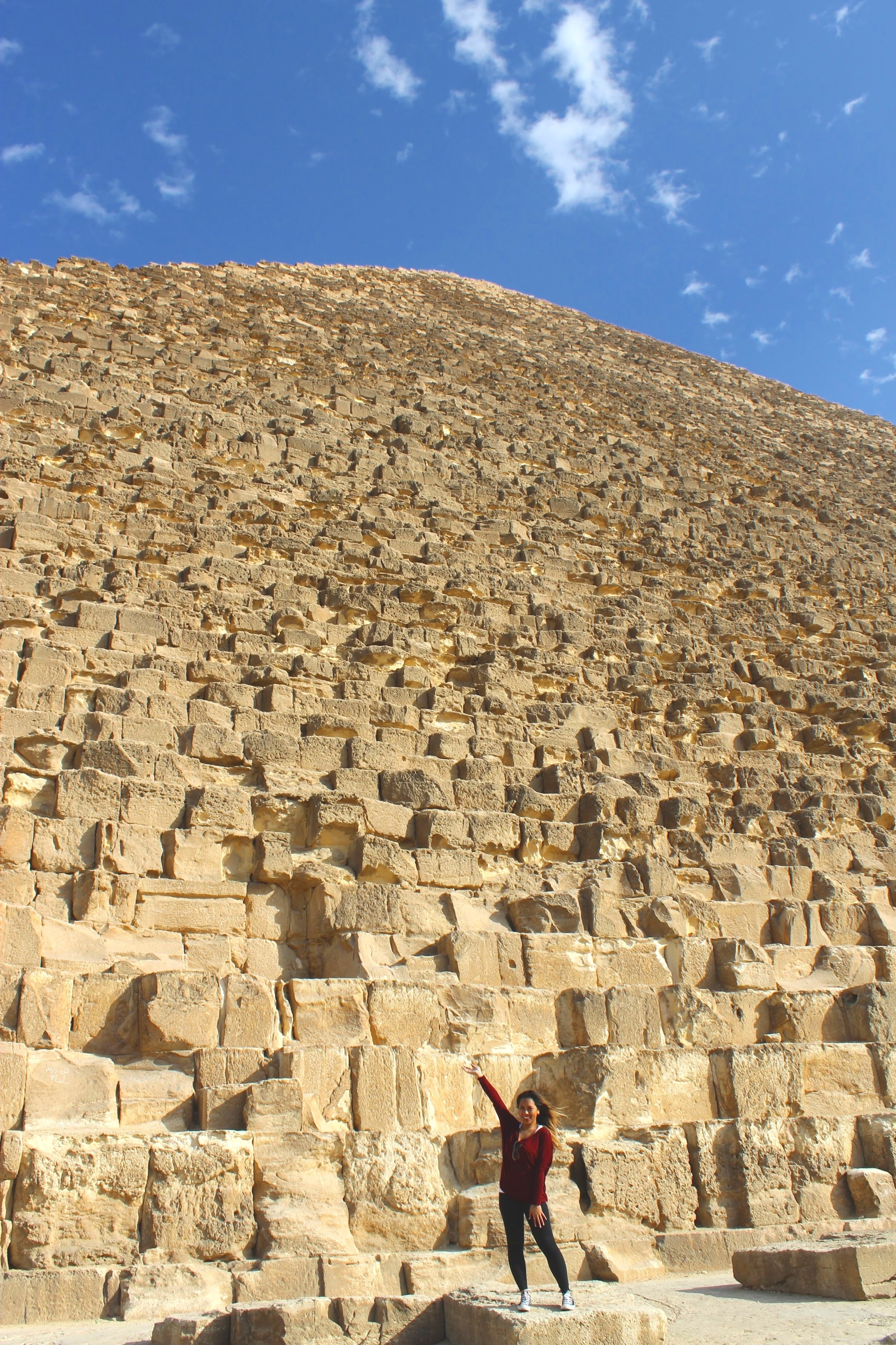 Another fun fact: The pyramids were originally covered in casing stones made of highly polished Tura limestone, meant to reflect the sun’s light and make them shine like jewels. I recommend wearing your sunglasses as your eyes might become sensitive from the sun reflecting to the beaming stones.